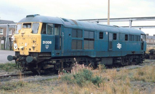 5/10/80:- Toffee-apple, 31006 at it's final resting place at the back of Doncaster Works yard.