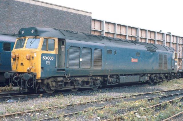 5/10/80:- 50006 "Neptune" awaits a general repair and refurbishment in Doncaster Works yard.