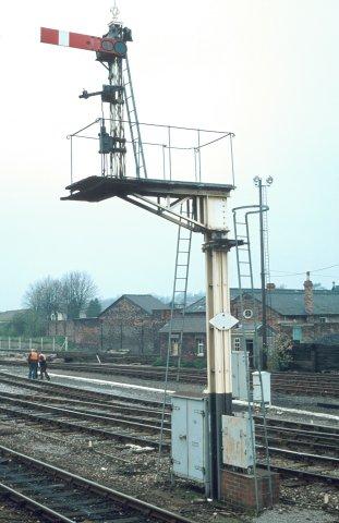 13/4/81:- Railbuilt post; Lattice doll Down Starter at Salisbury station.