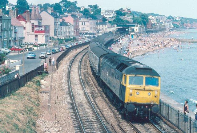 28/07/81:- An unidentified Class 47 heads a west of England express away from Dawlish station