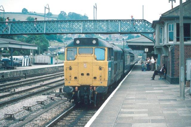 29/07/81:- 31163 stops at Totnes with a Plymouth - Exeter service.