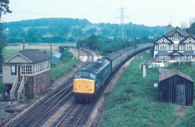 31/07/81:- An unidentified Class 46 locomotive at Cowley Bridge Junction with a westbound inter-regional service.