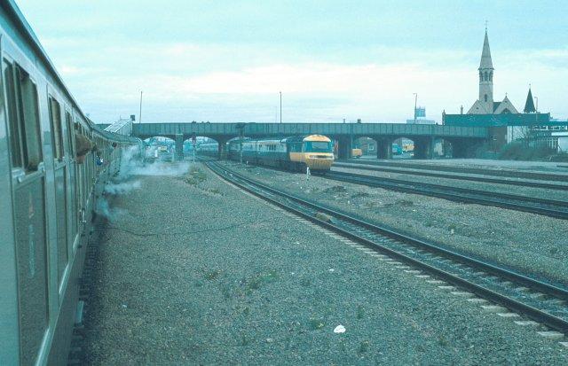 14/11/81:- The Deltic Cumbrian held outside Doncaster station.